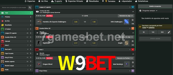 O W9BET oferece uma grande seleção de opções de apostas em e-sports com probabilidades competitivas